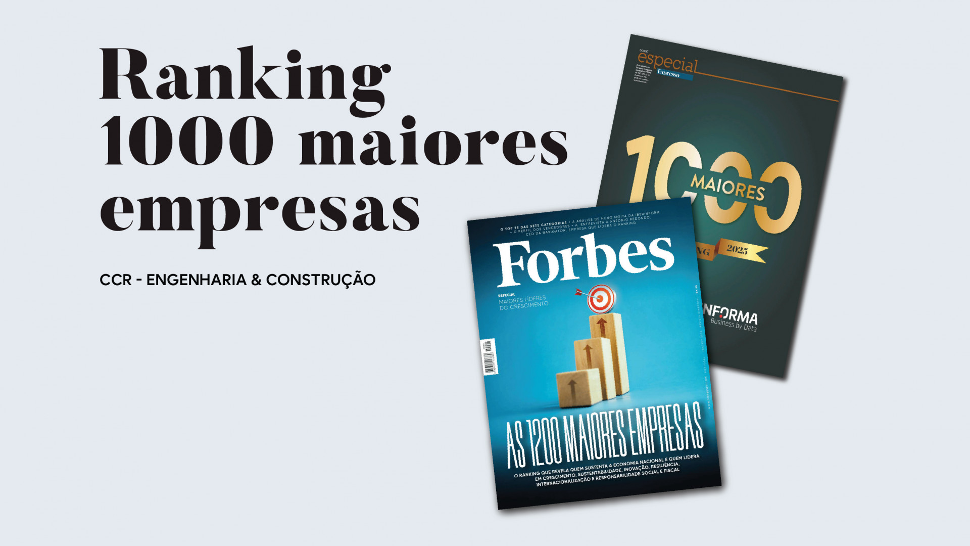 A CCR – Engenharia & Construção integra o ranking das 1000 Maiores Empresas em Portugal, um indicador objetivo da trajetória de crescimento sustentado registada nos últimos anos e da consolidação do seu posicionamento entre as empresas de maior relevância no setor da construção.
