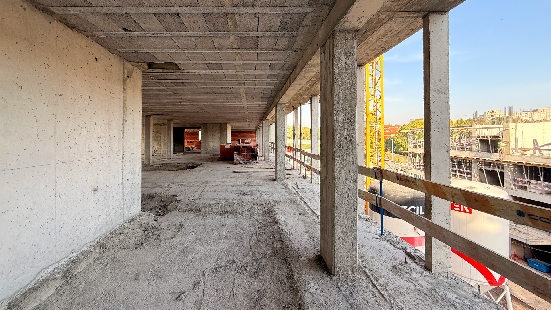 No Edifício D, foi executada a laje do 3.º piso, o que permite o arranque da betonagem do 4.º piso.
