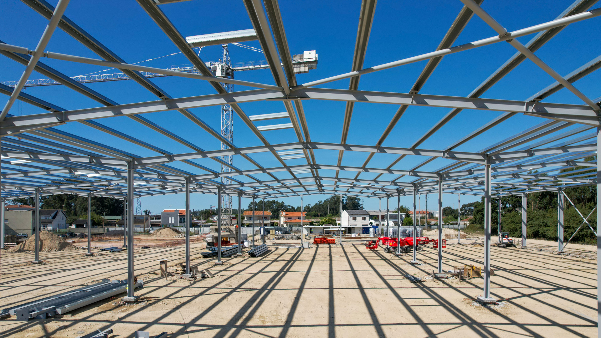 A empreitada encontra-se já em fase de execução, com a montagem da estrutura metálica e a aplicação dos primeiros revestimentos, etapas que marcam o arranque efetivo deste empreendimento industrial.