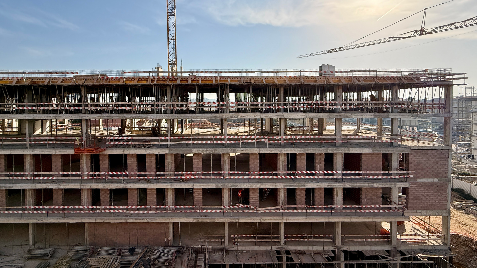 Com a estrutura finalizada, o edifício avança agora para a etapa de acabamentos e especialidades.