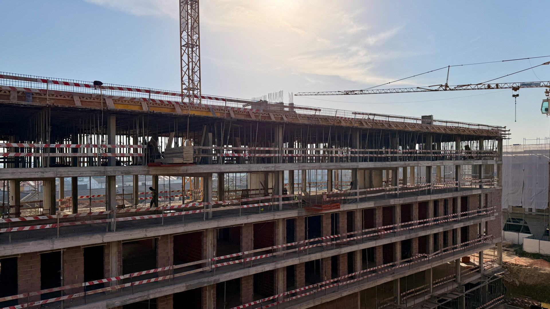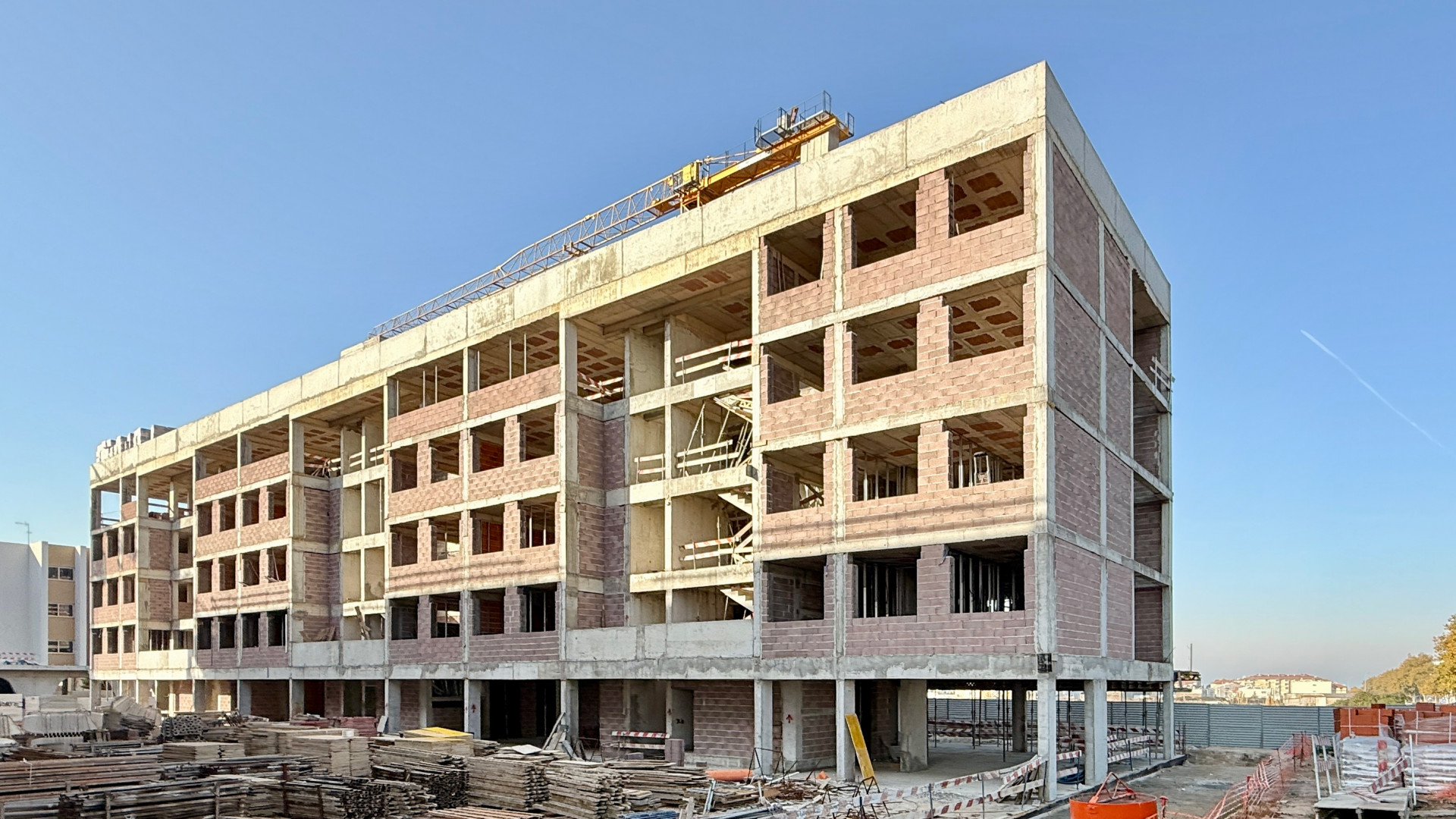 A empreitada do Edifício A, localizado na Rua Dr. Belarmino Pereira, na Póvoa de Varzim, entra numa nova fase de trabalhos após a conclusão da betonagem das cinco lajes, concluindo assim os elementos estruturais em betão armado.