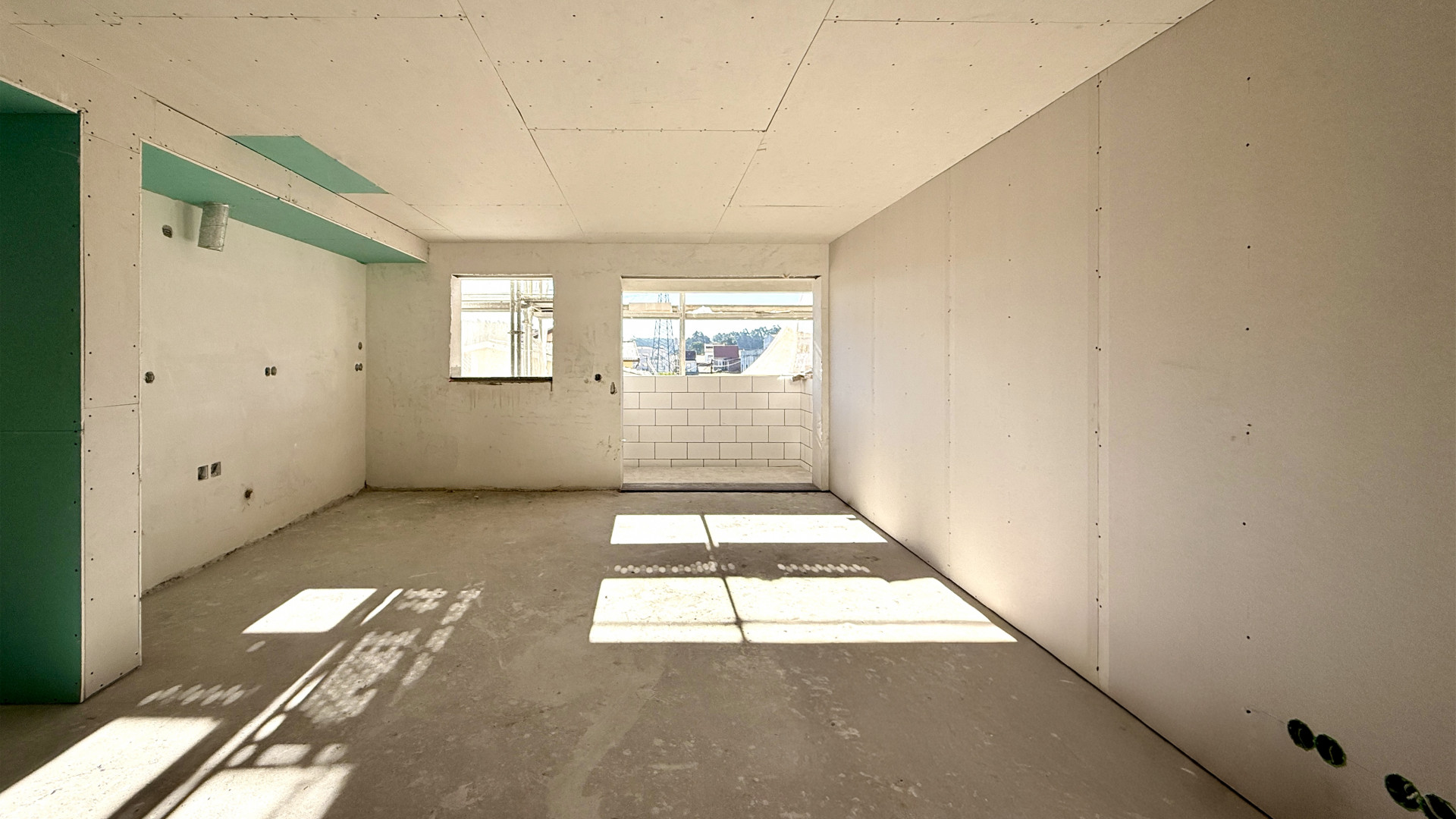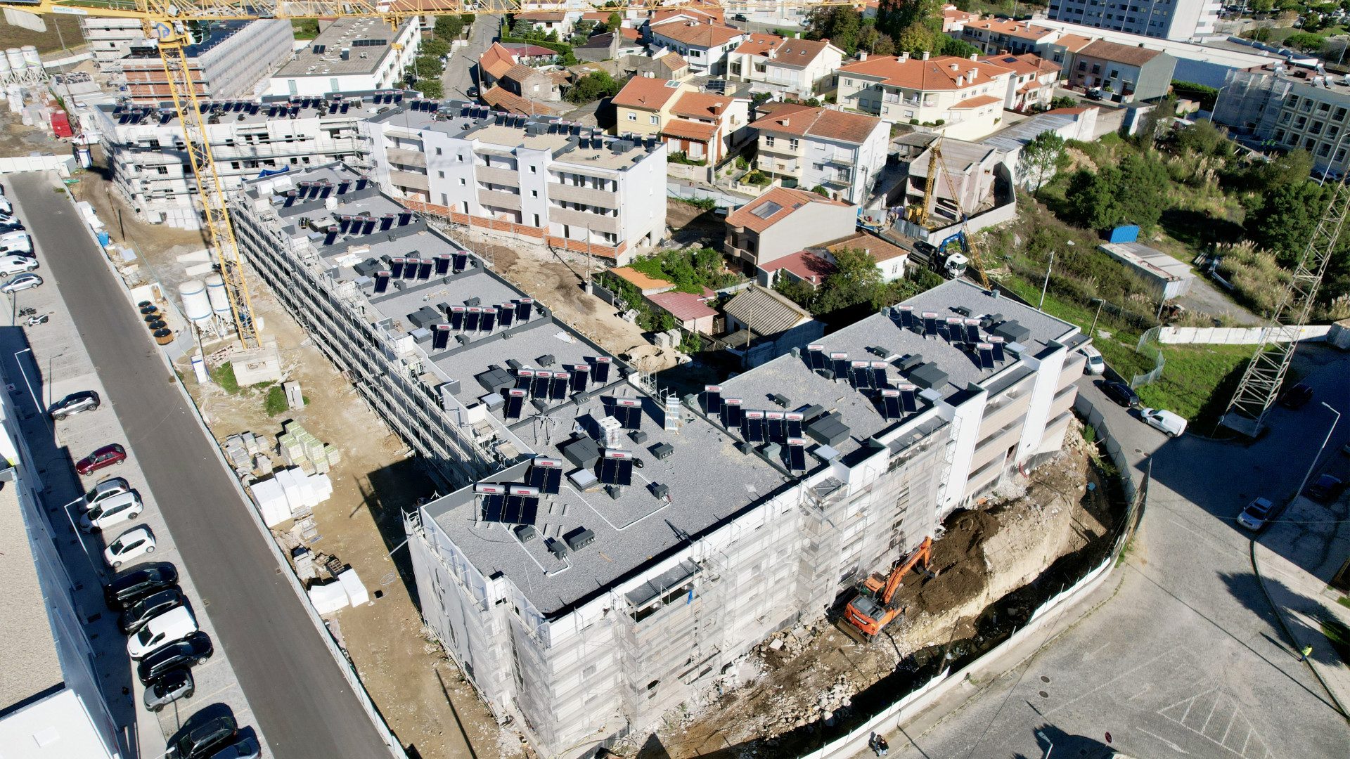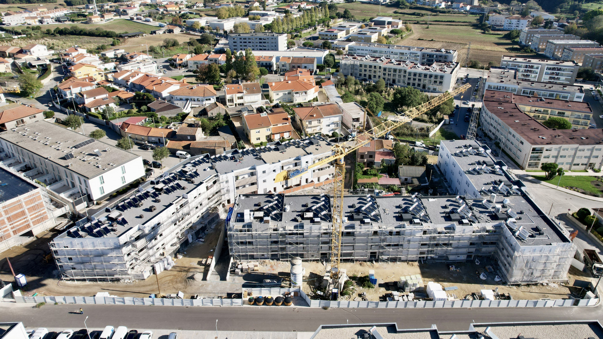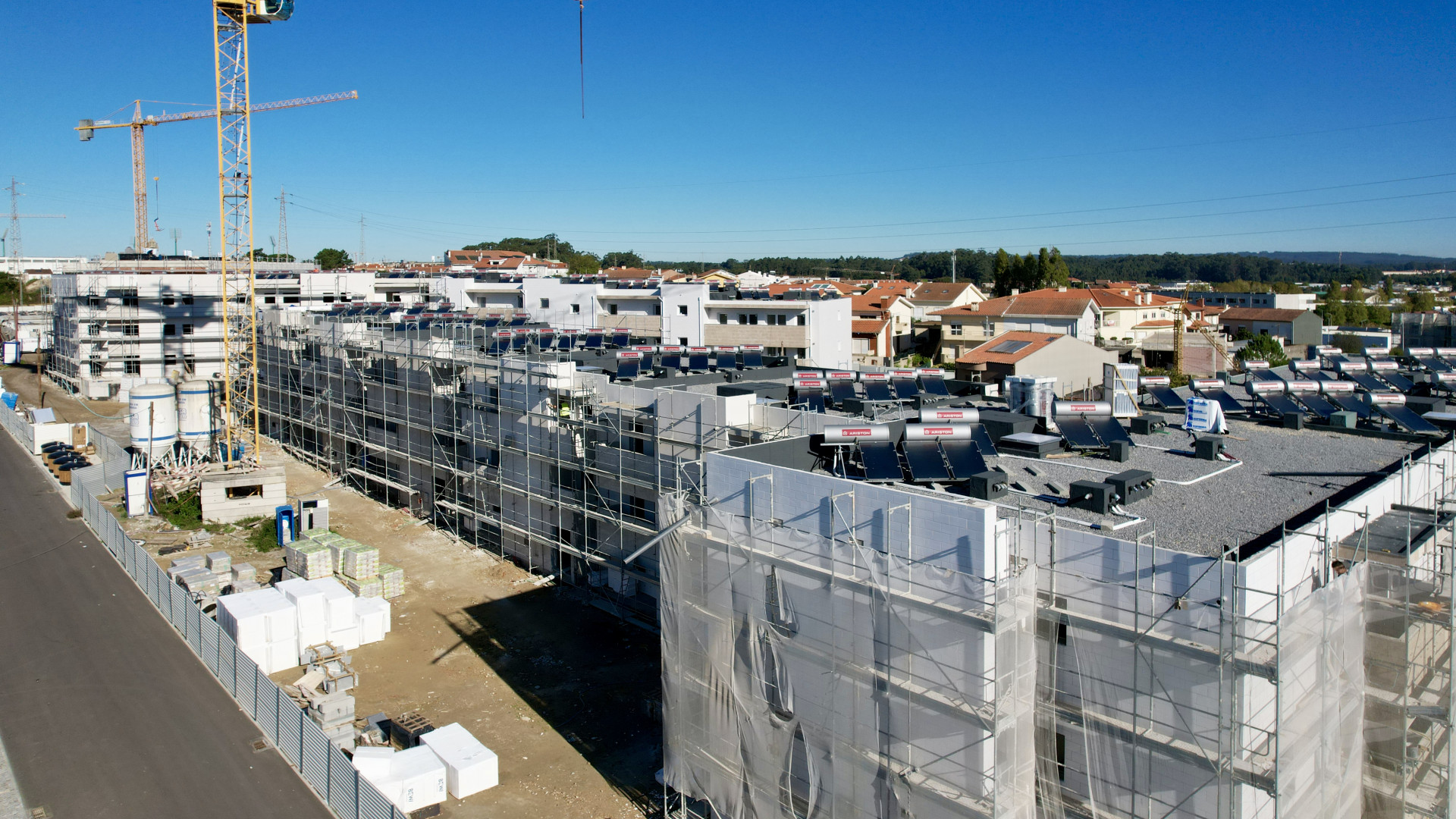 No Edifício 2, estão em curso a aplicação de gesso cartonado, a instalação de carpintarias e serralharias e as pinturas interiores.
