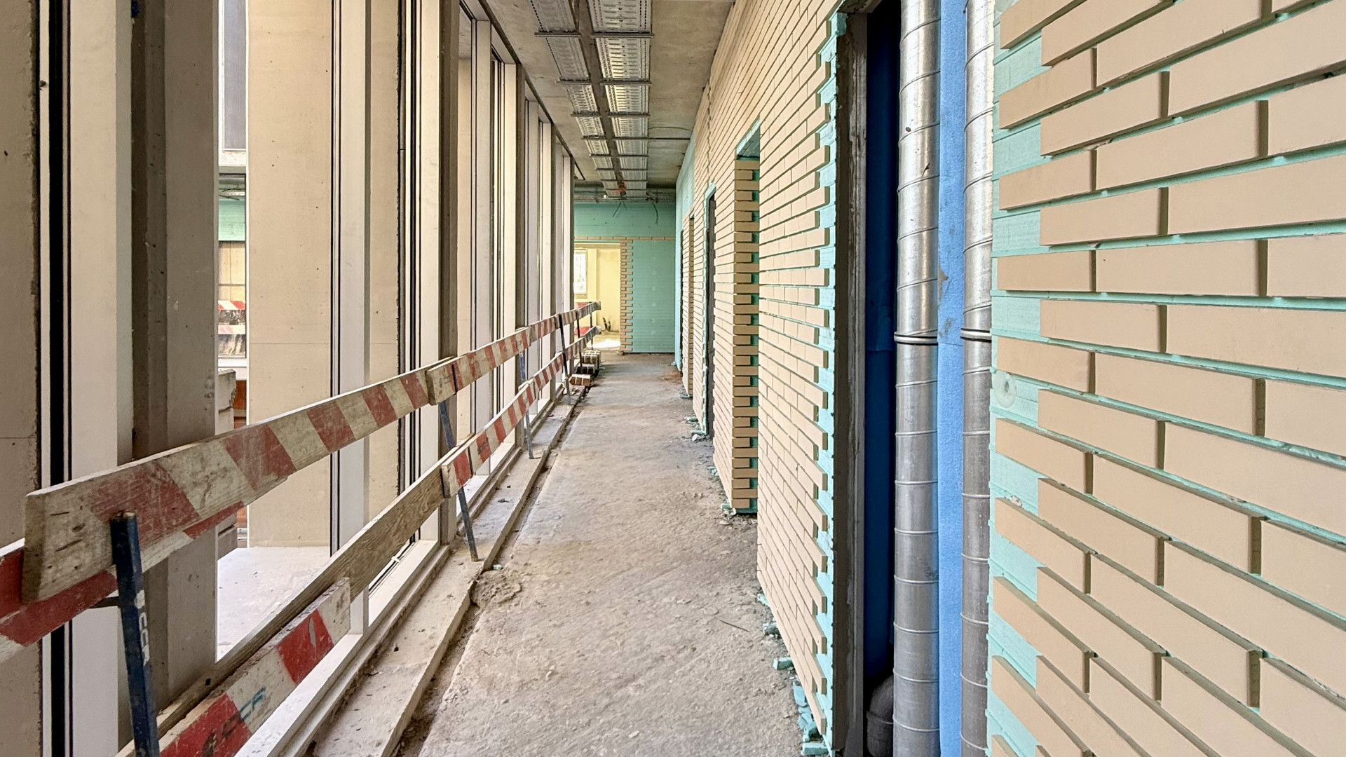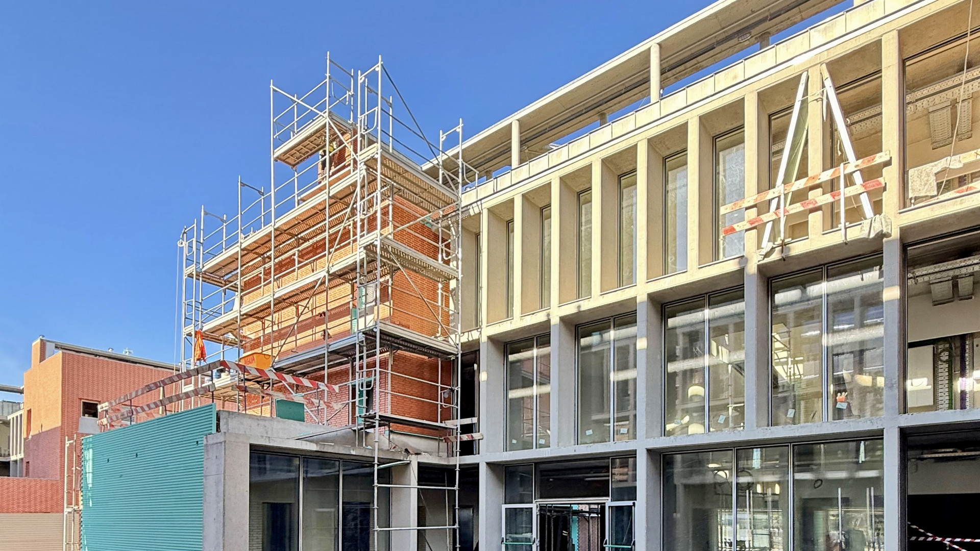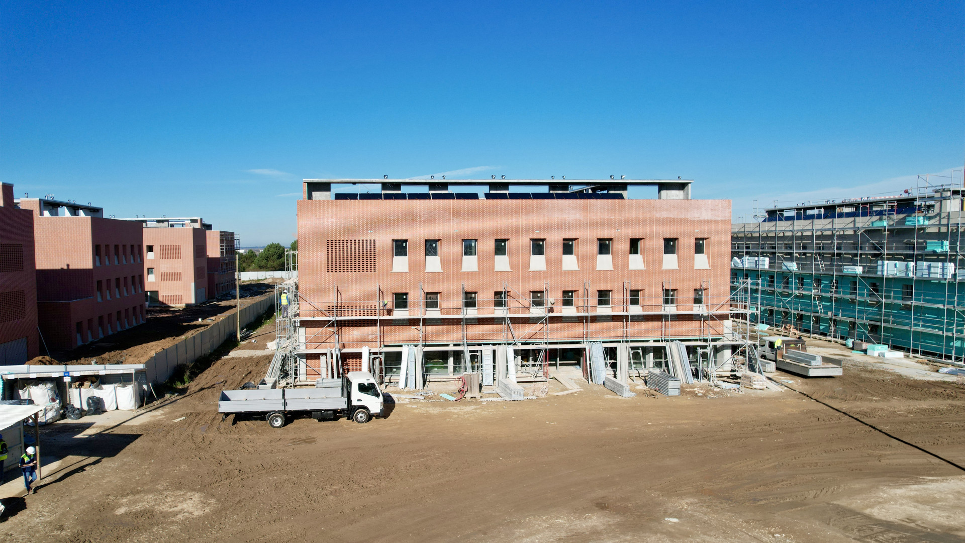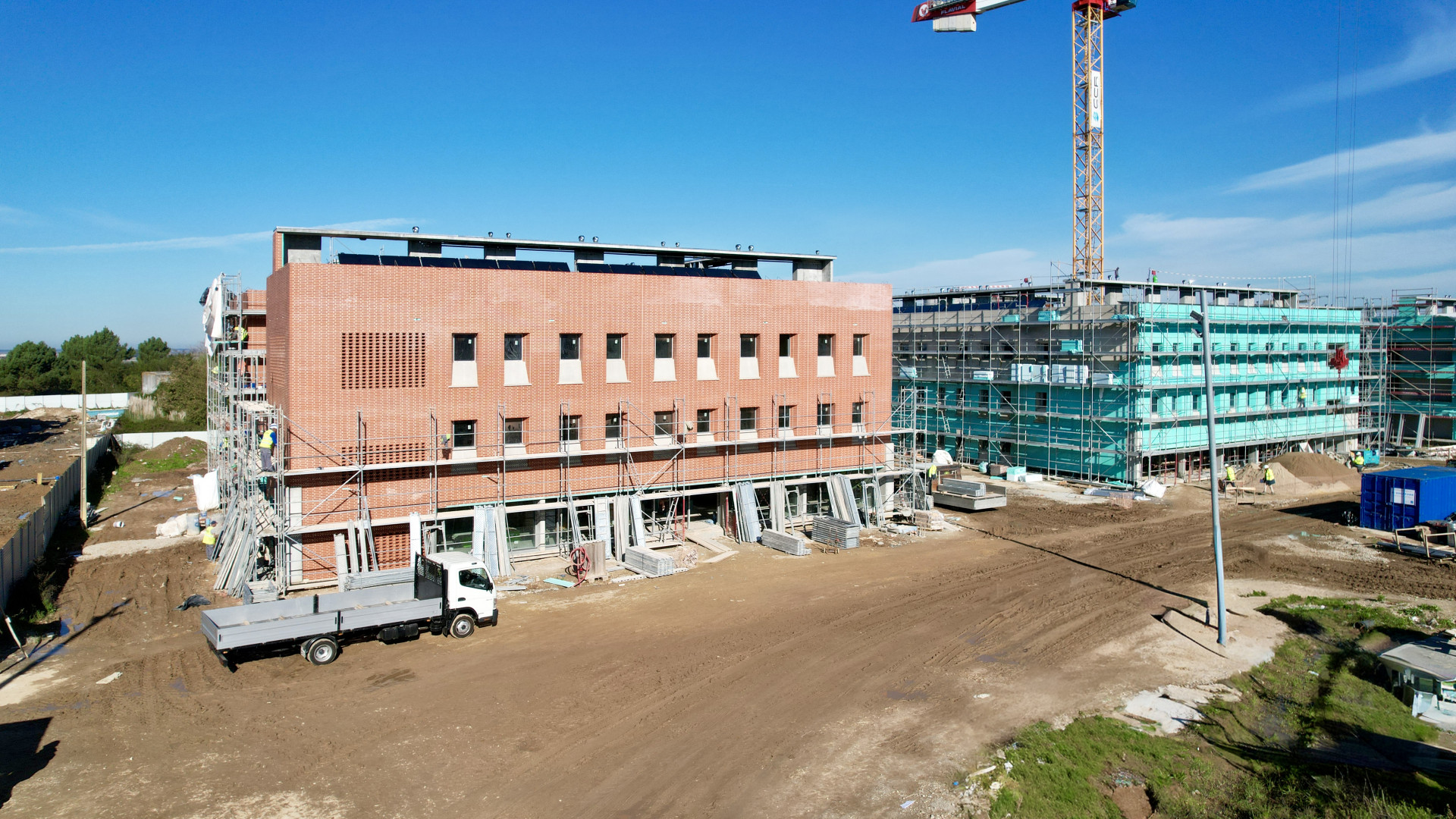 Atualmente, decorrem os trabalhos de acabamentos interiores e exteriores, com destaque para a aplicação do sistema de fachada CANDIWALL, revestimentos interiores de paredes e pavimentos, pinturas, portas interiores e divisórias aligeiradas.