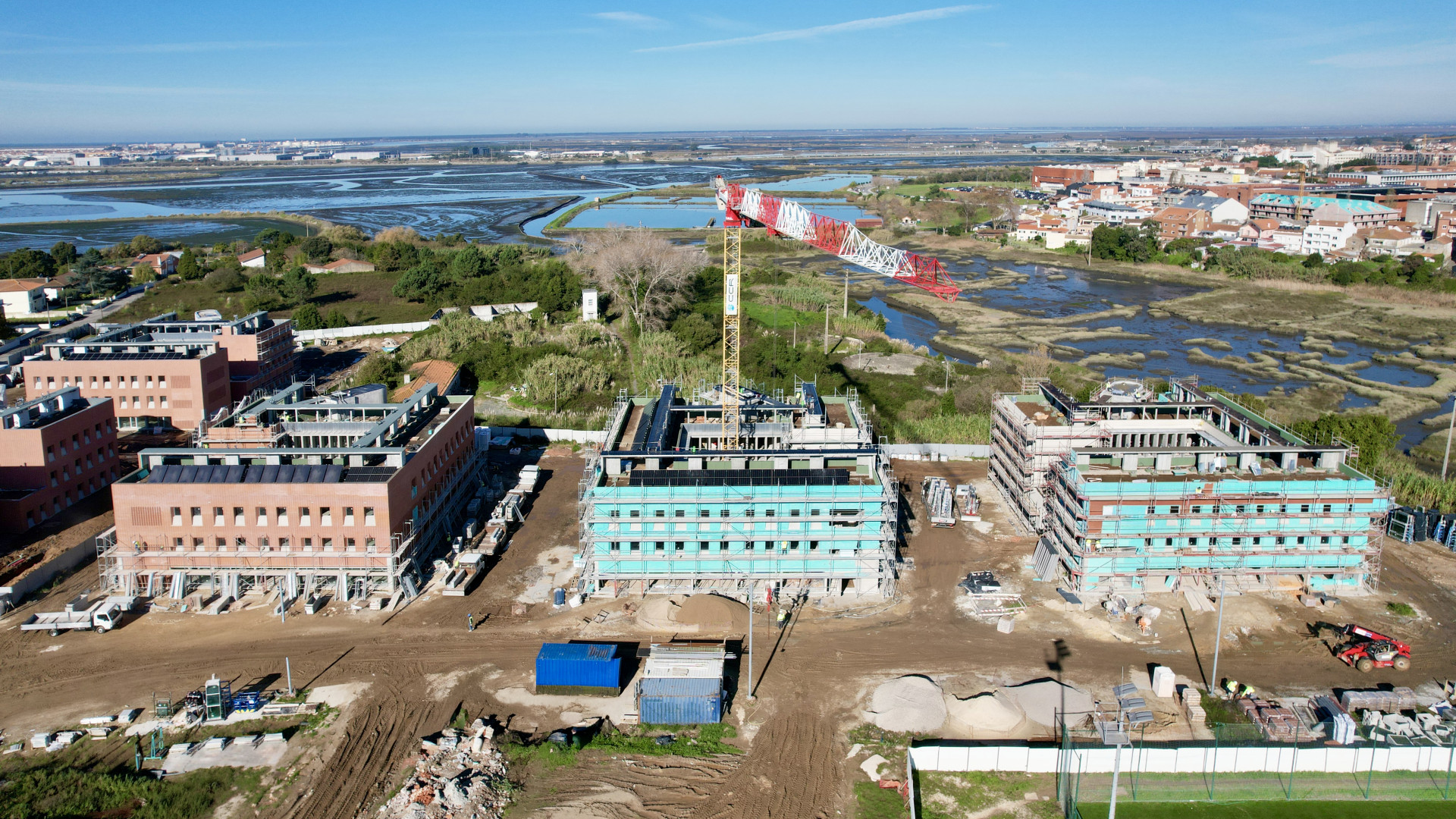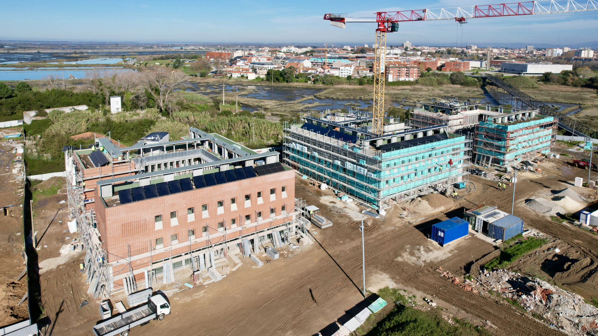 A empreitada integra ainda a aplicação de instalações sanitárias modulares, já concluídas, num total de 192 unidades, contribuindo para a eficiência e qualidade construtiva do conjunto.