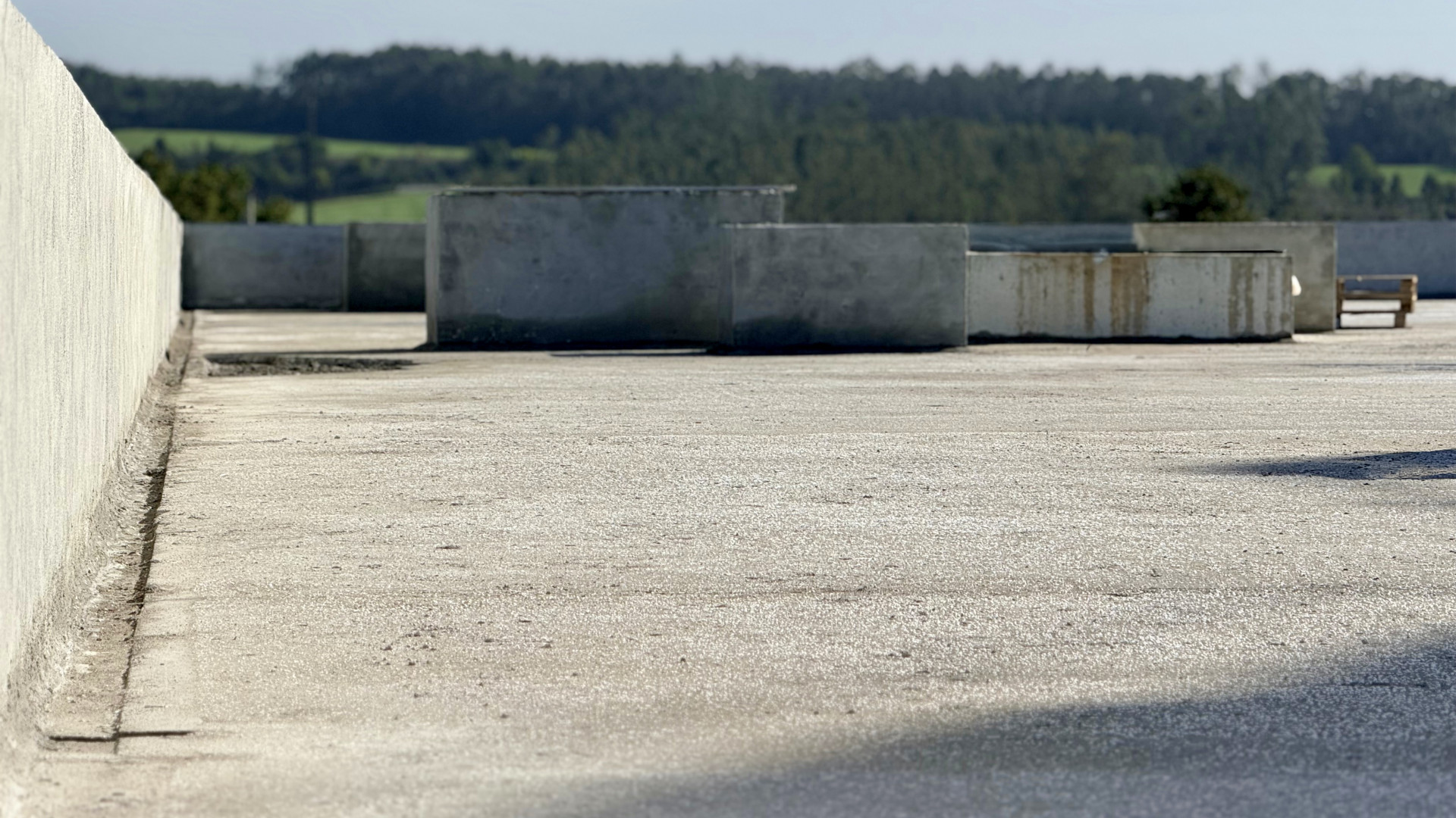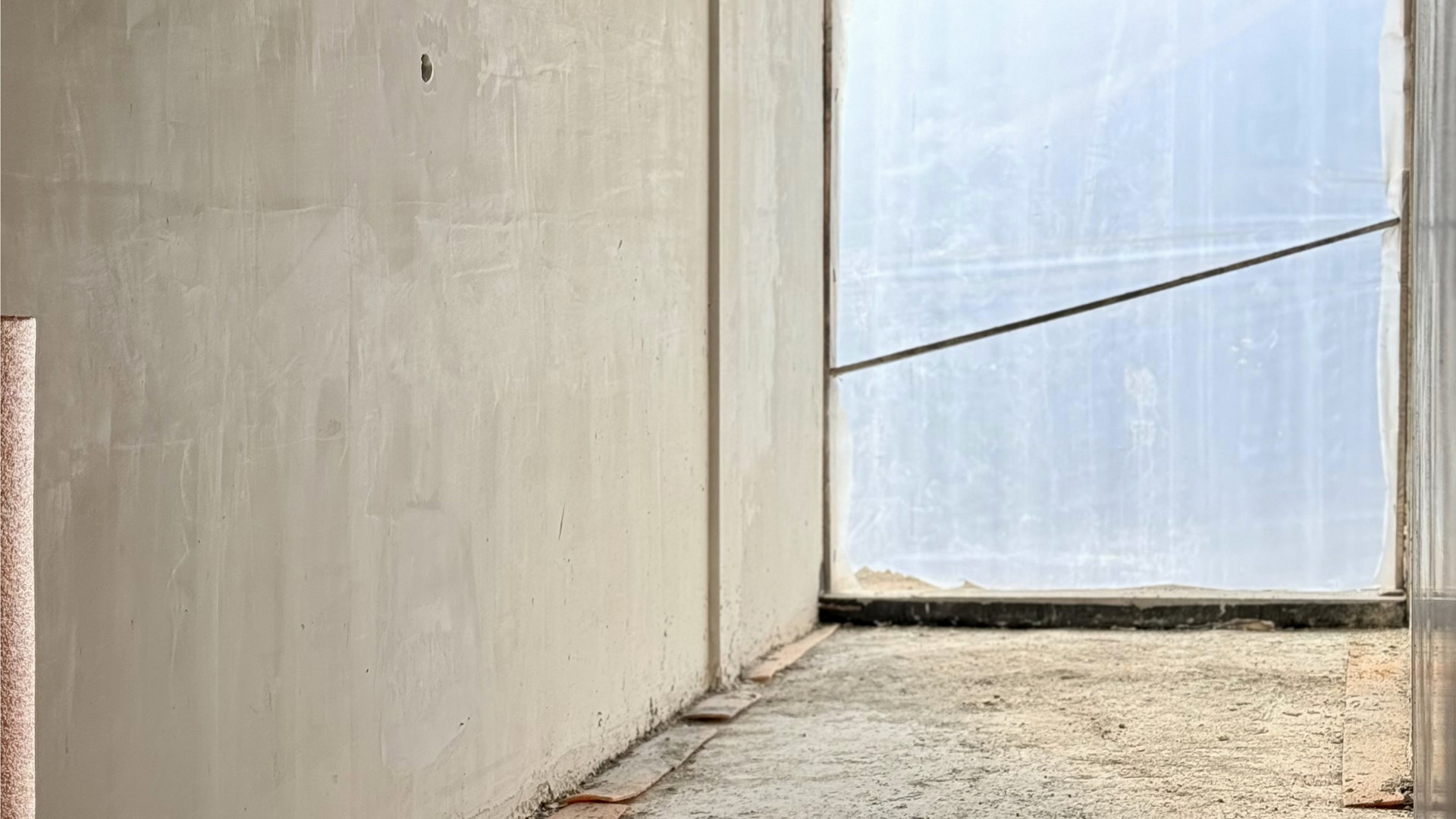 Ao nível da cobertura, encontra-se concluído o enchimento com betão leve, estando em curso a primeira fase da impermeabilização. Paralelamente, iniciaram-se os trabalhos de aplicação do sistema ETICS nas fachadas, assinalando a transição progressiva da obra para as fases de acabamento.