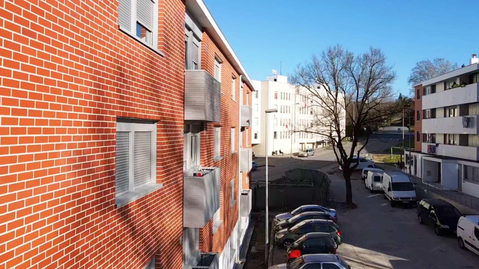 - Aplicação de alvenaria de tijolo perfurado de face à vista, apoiada em suporte metálico em todos os pisos, com isolamento térmico em placas de poliestireno extrudido.