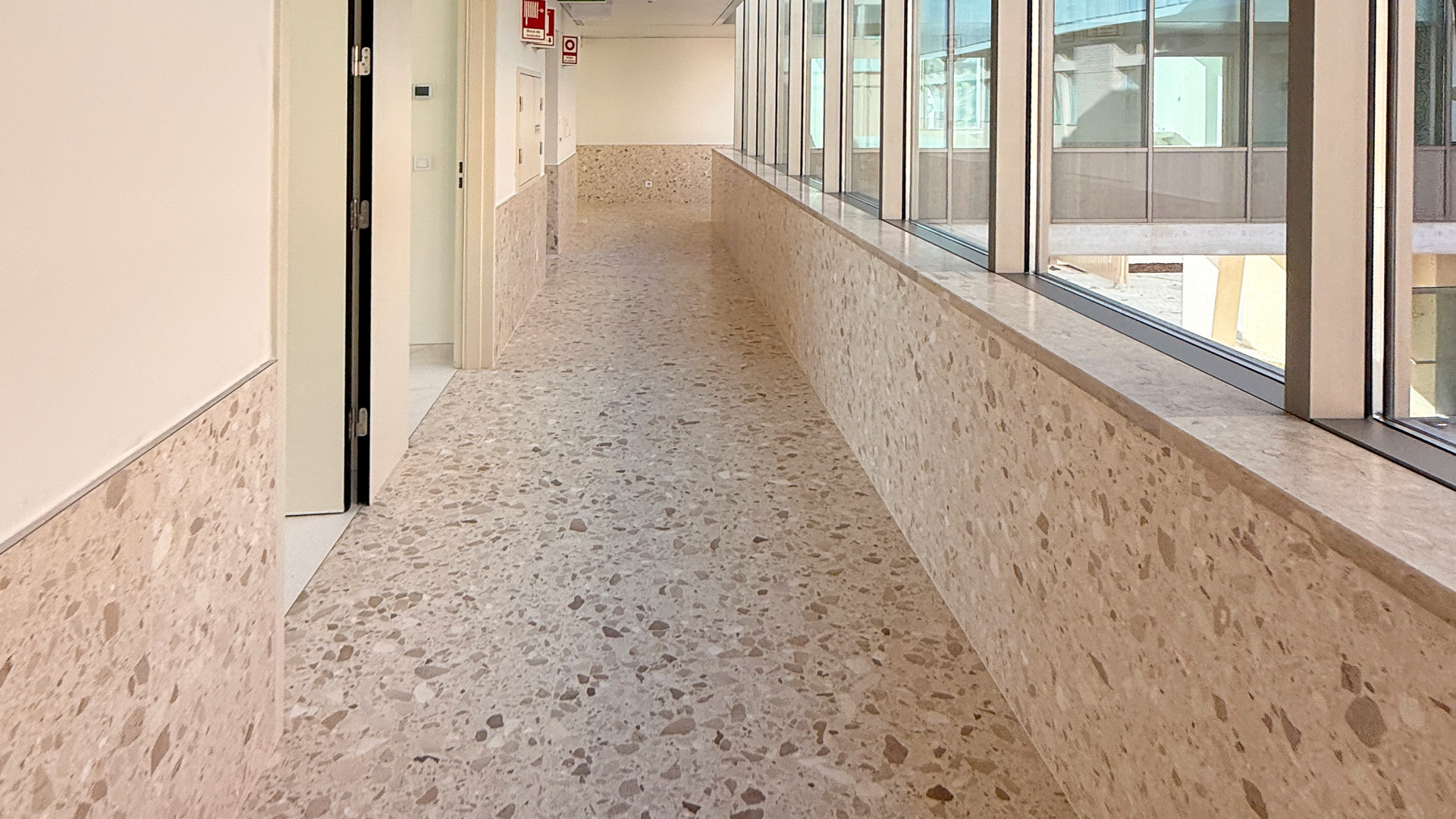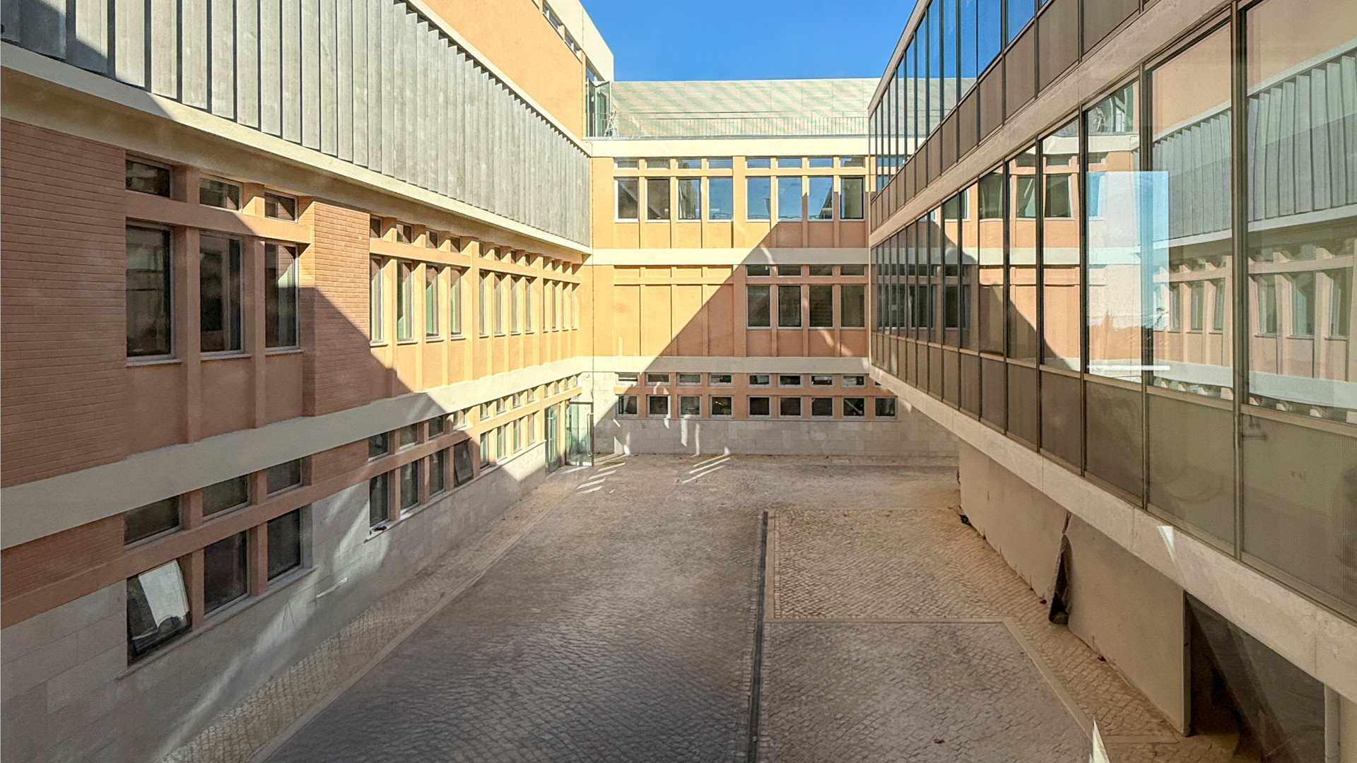 O exterior do complexo, com 1600m², inclui zonas de acessibilidade e espaços verdes que complementam a integração urbana do edifício.